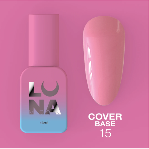 Cover Base №15 — це камуфлююча база ніжно-рожевого кольору. Ця колекція відмінно розподіляється по нігтях та утворює гарний відблиск. Вона гарно виглядає у глянцевому варіанті, а ще цікавіше у матовому.