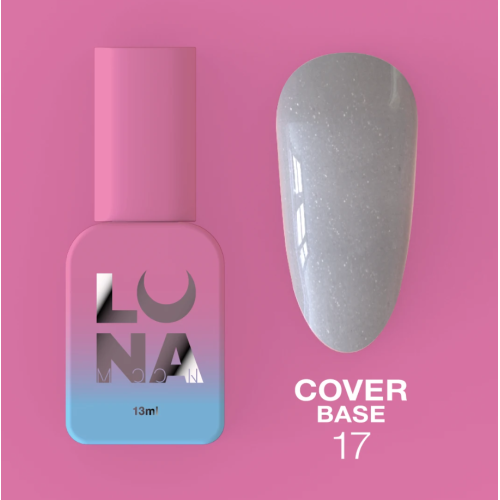 Cover Base №17 — це камуфлююча база сірого кольору з блискітками. Ця колекція відмінно розподіляється по нігтях та утворює гарний відблиск. Вона гарно виглядає у глянцевому варіанті, а ще цікавіше у матовому.