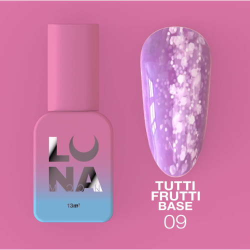 TUTTI FRUTTI BASE 09 — це камуфлююча база в сирому кольорі з різними кольоровими вкрапленнями, що повністю замінити Вам гель-лак.