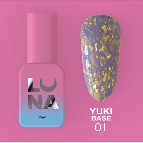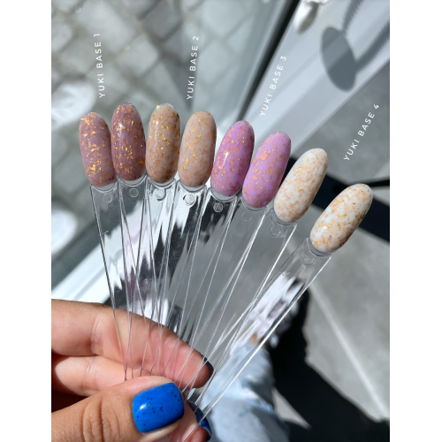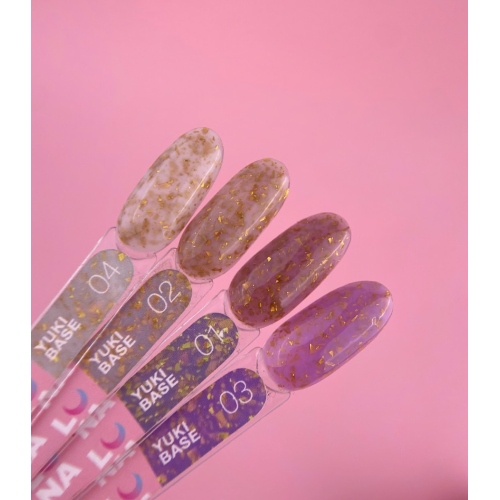 Yuki Base №1 — це камуфлююча база із золотою поталлю, що повністю замінити Вам гель-лак. Вона гарно виглядає у глянцевому варіанті, а ще цікавіше у матовому.