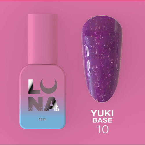 Yuki Base №10 — це камуфлююча база фіолетового кольору з ніжно-фіолетовою поталлю, що повністю замінить Вам гель-лак. Вона гарно виглядає у глянцевому варіанті, а ще цікавіше у матовому.