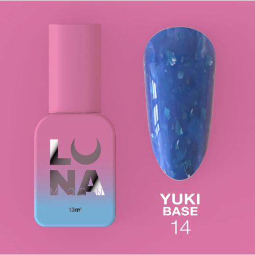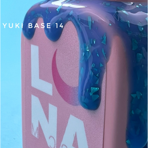 Yuki Base №14 — це камуфлююча база блакитного кольору з поталлю, що повністю замінить Вам гель-лак. Вона гарно виглядає у глянцевому варіанті, а ще цікавіше у матовому.