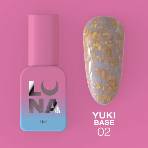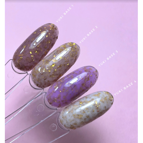 Yuki Base №2 — це камуфлююча база із золотою поталлю, що повністю замінити Вам гель-лак. Вона гарно виглядає у глянцевому варіанті, а ще цікавіше у матовому.