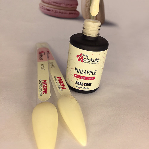 База Molekula Pineapple, 12 мл Базові кольорові покриття колекції Macaron – це відмінне поєднання соковитості та стійкості кольору, ідеальної густоти та стійкості покриття. База придає нігтям красивий рівний колір і створює враження легкості та ніжності. М'які і яскраві півтони, які легко підійдуть до будь-якого образу. Наявність у складі каучуку обумовлює здатність цієї бази заповнювати нерівності та борозенки нігтьової пластини, а також зміцнювати слабкі нігті. Завдяки особливій густоті та оптимальній пігментації кольору можна наносити однією кулею, вирівнюючи нігтьову пластину, легко наноситися, відмінно тримається, не тріскається і економно витрачається.
