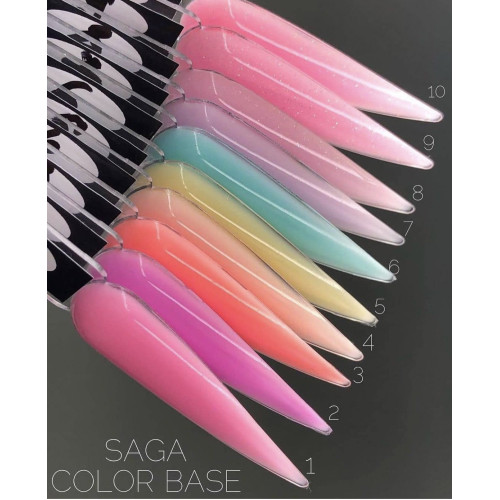 Saga Color Base (кольорова база) №10, 8 мл Весняна колекція кольорових баз від ТМ SAGA, не залишить байдужим жодного клієнта. Бази зручні у роботі, мають середню щільність кольору, самовирівнюються. Рекомендується підкладка з рабер бази.