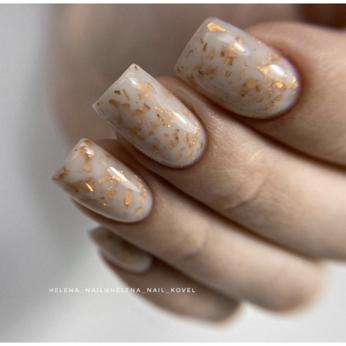 Технологія нанесення бази Saga Professional LEAF Base: На підготовлену нігтьову пластину нанесіть спеціальний засіб - знежирювач для нігтів. Потім нанесіть по всій поверхні нігтів безкислотний праймер і дайте йому кілька секунд підсохнути. Нанесіть базу з поталлю в 1 або 2 шари, залежно від бажаного ефекту. Полімеризація покриття в УФ-лампі 2 хвилини, або в LED – 30-60 секунд. Далі можете покривати топом для завершення манікюру.