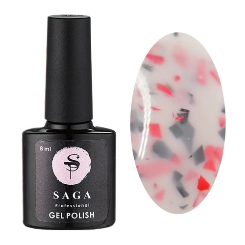 Технологія нанесення бази Saga Professional LEAF Base: На підготовлену нігтьову пластину нанесіть спеціальний засіб - знежирювач для нігтів. Потім нанесіть по всій поверхні нігтів безкислотний праймер і дайте йому кілька секунд підсохнути. Нанесіть базу з поталлю в 1 або 2 шари, залежно від бажаного ефекту. Полімеризація покриття в УФ-лампі 2 хвилини, або в LED – 30-60 секунд. Далі можете покривати топом для завершення манікюру.