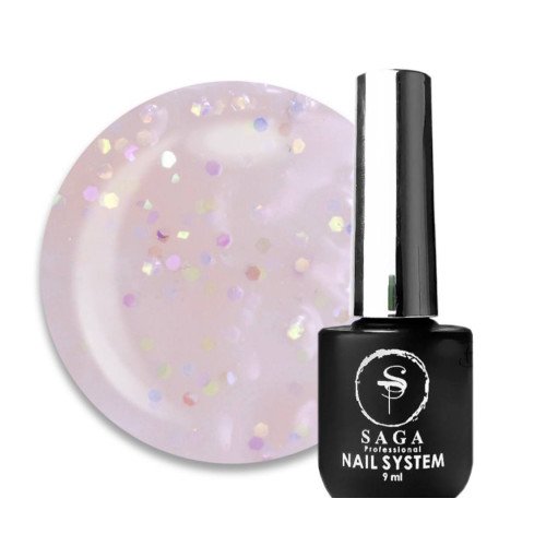 Густа каучукова база з додаванням пігменту та невагомих пластівців. Легко наноситься, відмінно розподіляється по нігтьовій пластині та самовирівнюється. Пластівці у складі додають родзинку покриттю, з цією базою можна зробити величезну кількість ніжних дизайнів, доповнивши промальовуванням гель-фарбою, павутинкою або додавши слайдер.