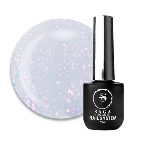 База Saga Royal №02, 9 мл - Royal Base з пластівцями юкки від Saga нікого не залишить байдужим! База середня за густотою, добре вирівнюється, низькокислотна, завдяки чому не пече у лампі. Під неї рекомендується підкладка з каучукової бази (вирівнювання також краще проводити каучуковою базою). Базою можна використовувати як колір, наносити її на інші гель-лаки для отримання нових цікавих відтінків. На довгі нігтики під цю базу краще використовувати гель, тому що на критичній довжині можлива незначна усадка. вимагає попереднього нанесення шару грунтовки звичайної прозорої бази; може використовуватися як самостійне декоративне покриття під топ і разом з гель-лаком.