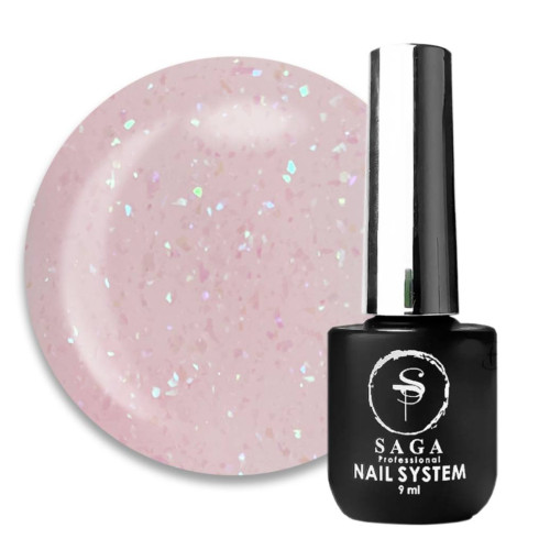 База Saga Royal №04, 9 мл - Royal Base з пластівцями юкки від Saga нікого не залишить байдужим! База середня за густотою, добре вирівнюється, низькокислотна, завдяки чому не пече у лампі. Під неї рекомендується підкладка з каучукової бази (вирівнювання також краще проводити каучуковою базою). Базою можна використовувати як колір, наносити її на інші гель-лаки для отримання нових цікавих відтінків. На довгі нігтики під цю базу краще використовувати гель, тому що на критичній довжині можлива незначна усадка. вимагає попереднього нанесення шару грунтовки звичайної прозорої бази; може використовуватися як самостійне декоративне покриття під топ і разом з гель-лаком.