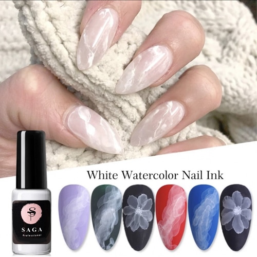 Техніка застосування акварельних флюїдів: Нанесіть на нігтик білий гель-лак у два шари.Просушіть у лампі.