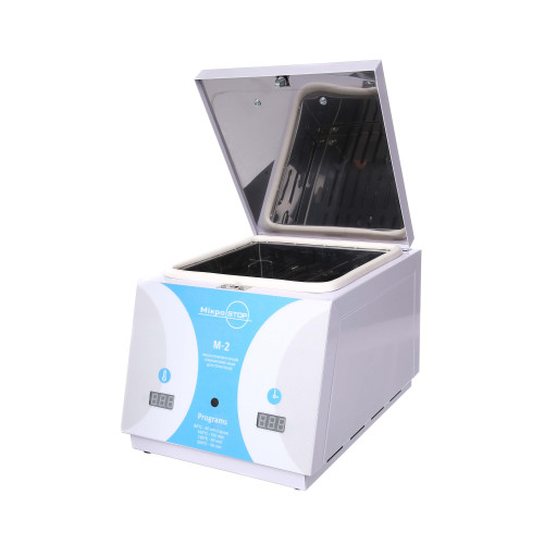 Стерилізатор Мікростоп М2 підходить для великих салонів краси та великих нейл студій, де в одну зміну одночасно працюють 2 або 3 майстри. Керується за допомогою однієї кнопки.