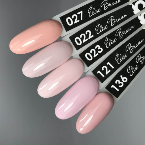 Продукція Elise Braun – розроблена для забезпечення потреб клієнтів у стійкому та якісному манікюрі. Помірна консистенція гель-лаку дозволяє його легко наносити на нігтик простими рухами, а пігментованість є гарантією насиченості кольору манікюру.