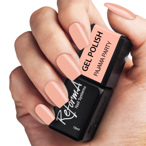 Гель-лак ReformA Pajama Party, 10 мл ReformA Cosmetics - це виробник професійної косметики для салонного використання. Гель-лаки ReformA мають великий асортимент кольорів та відтінків. Склади засобів мають досить густу, але не розтікається консистенцією. Завдяки унікальній інноваційній формулі засіб легко і просто наноситься на нігтьову пластину і утворює гладке покриття без різних нерівностей і грудок. Багато професіоналів відзначають, що лаки мають досить зручний пензлик: широкий, але набирає оптимальну кількість лаку для одного нігтя. При дотриманні технології та правил нанесення стійкість становить до 3-5 тижнів без тріщин та потемнінь.