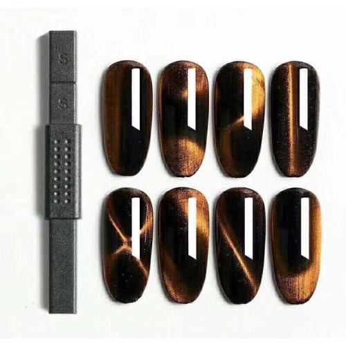 <p><b><u>Магніт для гель-лаку</u></b> </p><p>Незамінний атрибут, за допомогою якого вдається отримати яскраві відблиски (візерунки) на поверхні нігтів і продемонструвати всі переваги нового декоративного покриття. Його потрібно піднести до поверхні нігтя зі свіжим шаром гель-лаку (не просушеним) і утримувати на відстані декількох міліметрів від неї протягом 5-10 секунд. У цьому випадку вийде ефект відблиску - світлий, об'ємний з красивими переливами. </p><p>Для створення візерунка магнітом потрібно здійснювати різноспрямовані рухи. </p>