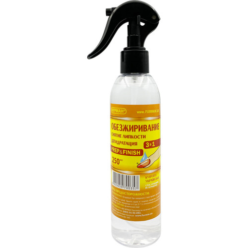 Засіб для знежирення та зняття липкості (prep &ish; finish ) Знежирювач призначений для підготовки нігтьової пластини до нанесення декоративного лаку. Він усуває забруднення, зайву вологу і жир, тим самим сприяє кращому зчепленню матеріалу з натуральним нігтем.
